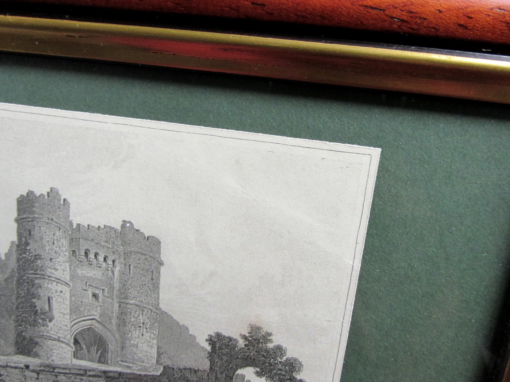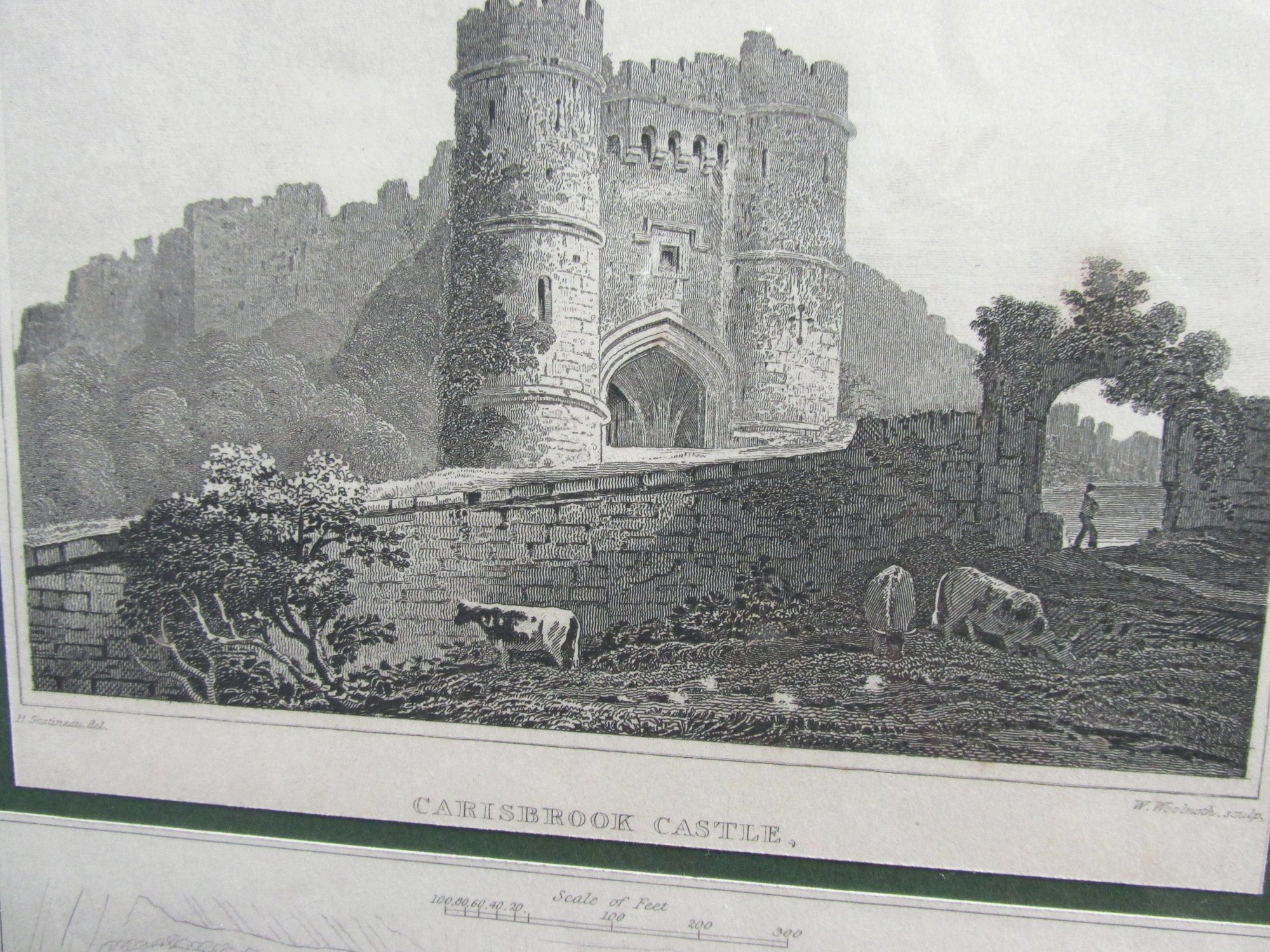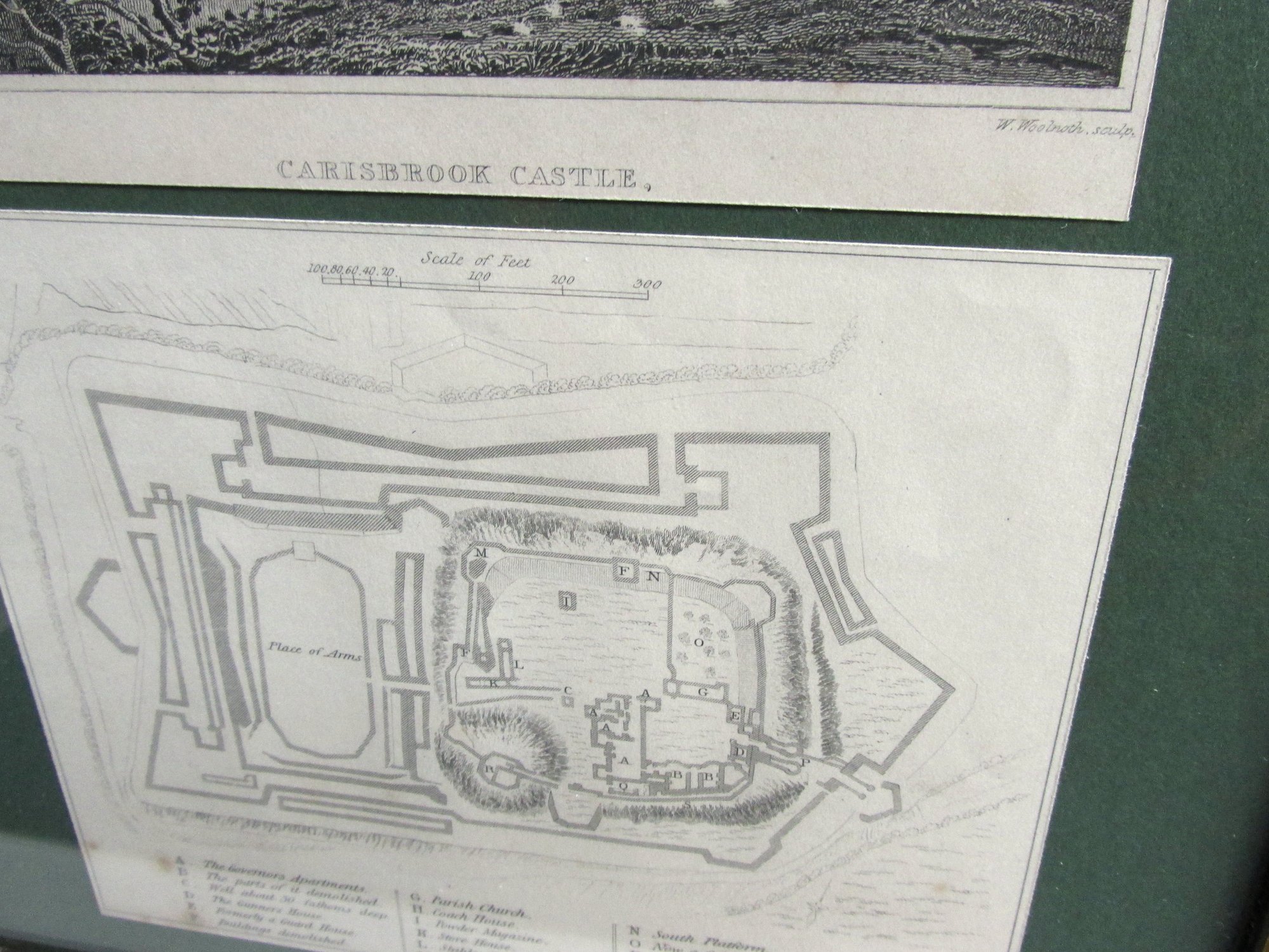 Antique Carisbrooke Castle Engraving Print Duo in Vintage Frame, Isle of Wight Scenery