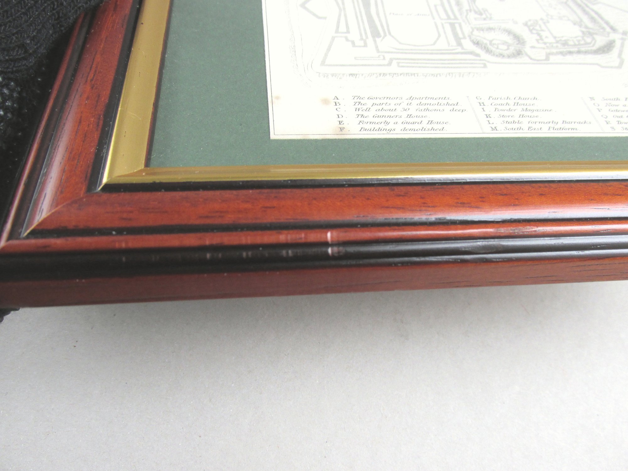 Condition Notes: The Castle scenery print is excellent with minimal signs of wear. The plan print has multiple small blemish spots mostly along the bottom edge but the main part of the print (the diagram) is excellent. Wooden frame edges have very slight wear/marks but the frame is excellent on the whole.