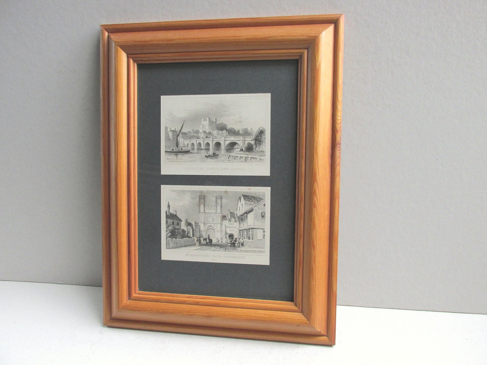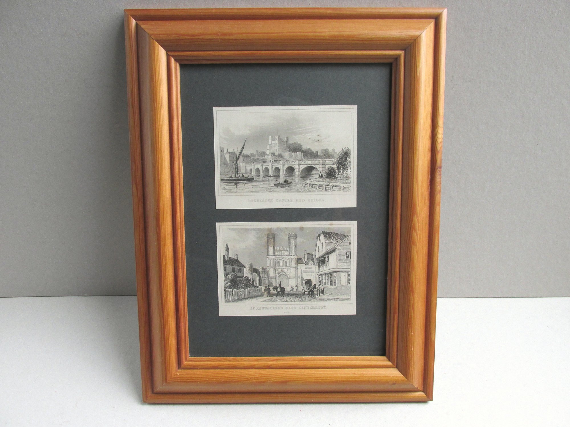 Condition Notes: The Rochester print is excellent with a few tiny marks. The Canterbury print is very good overall with some blemish spots in the sky/top border but the rest of the print is excellent. Wooden frame edges have some small scuffs/abrasion spots, and a natural knot delve on the rear edge. Rest of frame is very good to excellent.