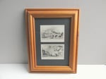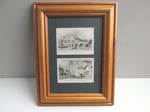 Two antique miniature tonal black and white engraving prints, mounted in one frame (vintage). Ready to hang.