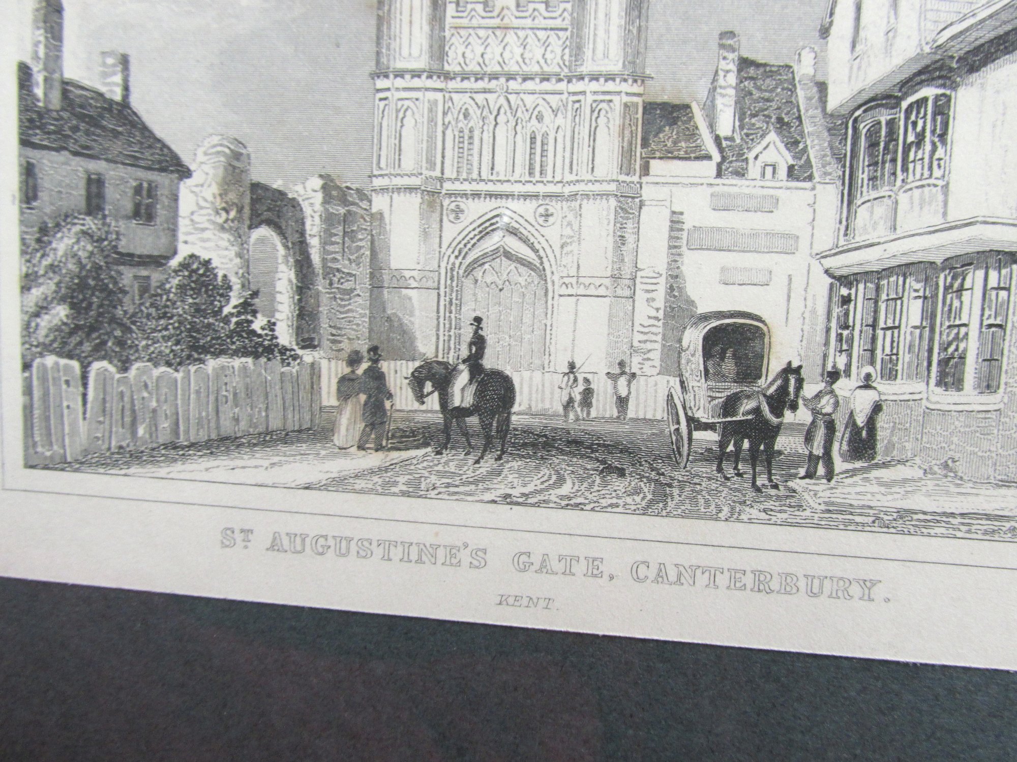 Antique Kent Miniature Engraving Print Duo in Vintage Frame, Rochester Castle and Canterbury Gate