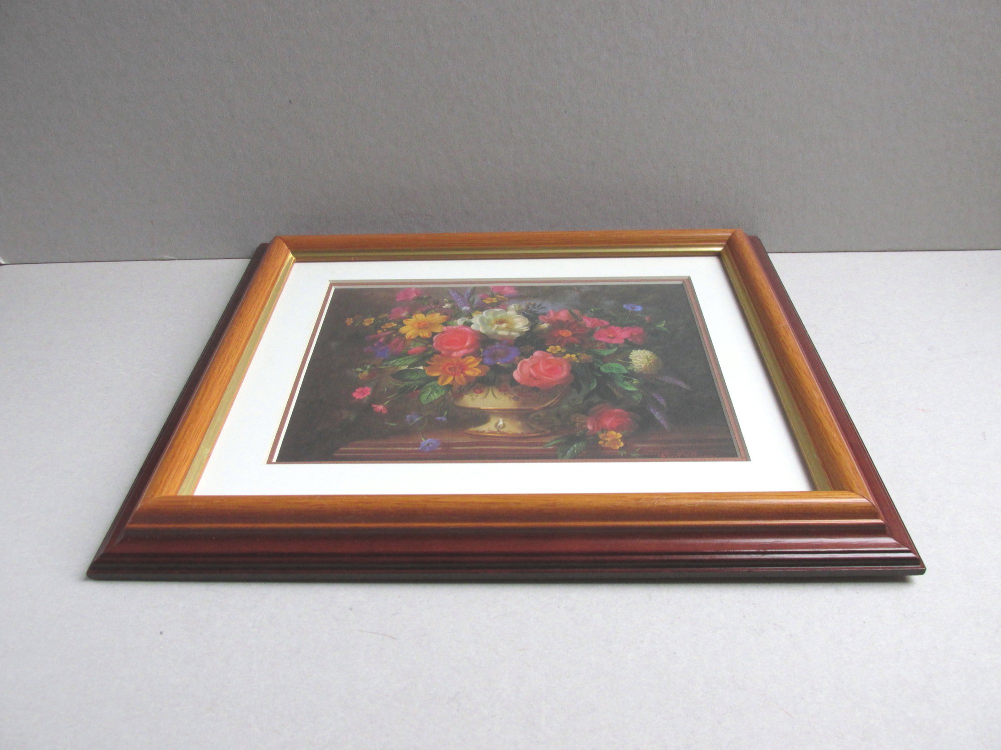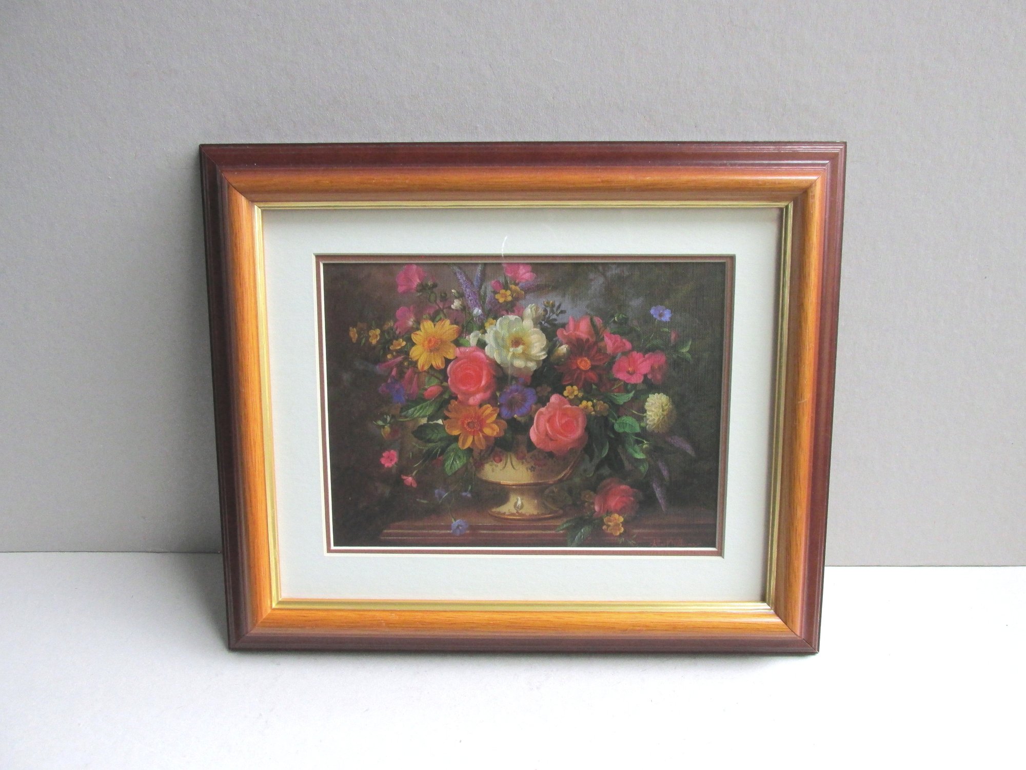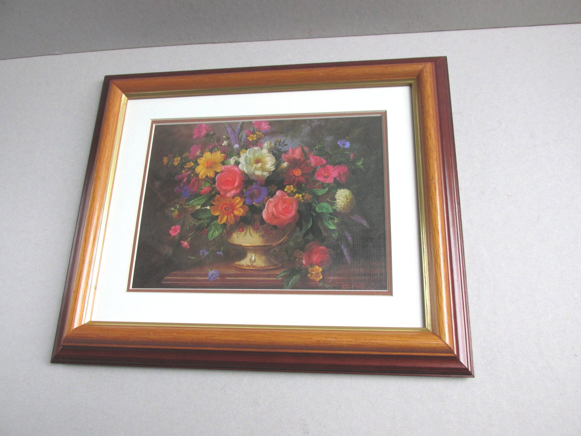 Floral Still Life by Albert Williams, Small Vintage Art Print in Wooden Frame