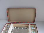 Circa 1960s set of 6 shot glasses with small silver colour metal tray, with original presentation box.